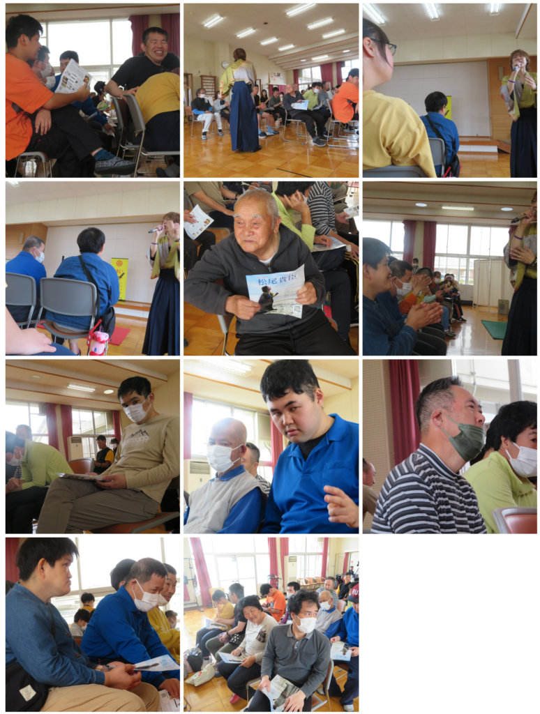ホスピタルライブ 大地 2025年6月11日 虹の会編集部 5月15日(木)音楽活動家(シンガーソングライター)の松尾貴臣さんによるホスピタライブをハーモニーホールで開催しました。大地施設内でコンサートをしてから7年ぶりのライブでした。間近で生歌を聴き、「楽しかった!」「感動しました!」など皆さん、感想を話されていました。 日記一覧にもどる